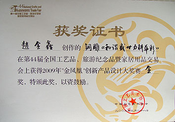 荣获中国工艺美术"金凤凰"创新产品设计金奖