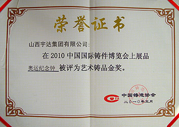 荣获2010中国国际铸件博览会艺术铸品金奖
