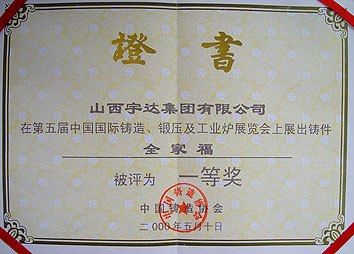 荣获第五届中国国际铸造、锻压及工业炉展览会一等奖