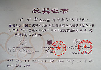 荣获"天工艺苑•百花杯" 中国工艺美术精品奖优秀奖