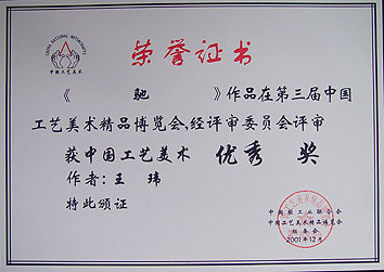 荣获第三届中国工艺美术精品博览会优秀奖
