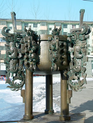 其二:由于晚会的现场在央视大楼上面,任何吊装、叉车设备不可能进入,必须靠多人同时抬进,虽然铸鼎要求有一定的厚度,但铸到这样的重量要求几乎是难上加难,因为大鼎本身异常复杂的造型结构几乎不允许有什么减轻重量的可能性了,但必须按这一要求铸造;