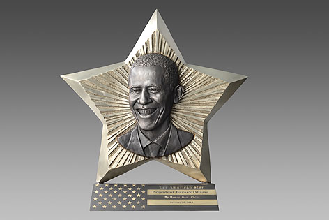 《美国之星——奥巴马总统》是中国著名雕塑艺术家黄剑"世界之星"系列雕塑作品之一,也是该系列雕塑的第一件完成作品。"世界之星"系列作品意在为当下致力于人类和平发展的大业、在自己的国家甚至全世界拥有巨大的影响力的人物塑像,如中国的习近平书记、美国的奥巴马总统、还有联合国的潘基文秘书长等等,以表达期盼他们为世界和平、人类发展、各国友谊做出更大的贡献的愿望。