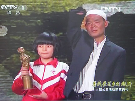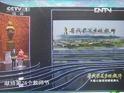 2012年9月10日晚,由中央电视台、光明日报联合举办的2012"寻找最美乡村教师"大型公益活动颁奖典礼在中央电视台隆重举行。 由著名雕塑家潘松设计、宇达制作的"最美乡村教师奖杯" 随着每一句感情至深的"老师好",颁发给全国优秀最美乡村教师,他们多年对艰苦与贫寒的坚持全部化作他们心中那份坚守与光荣,熠熠生辉的奖杯映着淳朴无私的笑脸,在灯光下无比伟大,无比神圣。