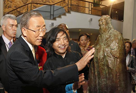 2012年9月4日下午18:30,由中华人民共和国文化部、中华人民共和国常驻联合国代表团共同主办的"文心铸魂——吴为山雕塑艺术国际巡展·联合国特展"在联合国总部大厦隆重开幕。