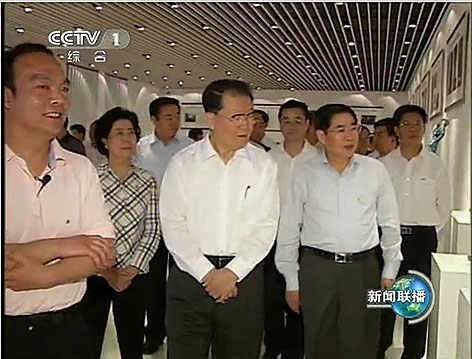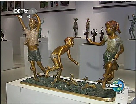 李长春同志一行在宇达青铜文化产业园内的创意青铜艺术礼品馆欣赏宇达作品《花好月圆》