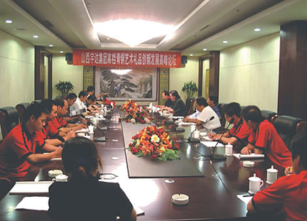 2008年7月25日-27日,旨在立足现代科技,传承保护传统工艺技术,将优秀的古代传统工艺技术、成果借助当代技艺应用于山西宇达青铜艺术礼品,提升其技术、艺术、市场附加值的宇达集团高档青铜艺术礼品创新发展高峰论坛在山西省运城市金鑫大酒店成功举办。来自全国各地的专家学者、工艺美术大师等9人参加了此次高峰论坛。并就宇达集团青铜艺术礼品创新模式和组织模式达成初步议定。