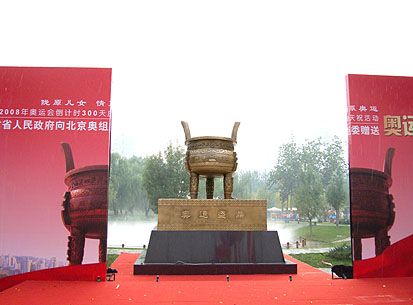 宇达制作的《奥运盛鼎》向北京奥组委进行捐赠