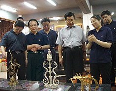 2004年6月7日,全国政协主席贾庆林、副主席王忠禹在北京韩美林工作室专程参观了宇达制作的青铜雕塑和青铜礼品,并听取了卫恩科总经理长达三个小时的宇达青铜雕塑和青铜礼品的详细介绍。贾庆林主席对宇达的青铜雕塑和青铜礼品给予高度评价,并对卫总提出,希望宇达能进一步拓展中国的青铜旅游商品市场的殷切希望。